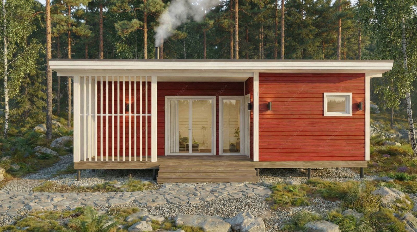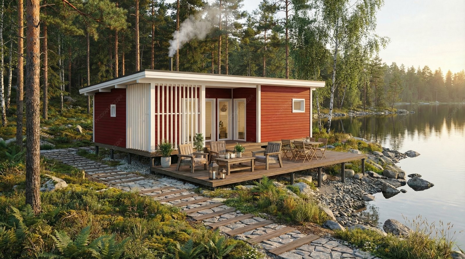 Огнебиозащита (бесцветная) или декоративный деревозащитный состав "Здоровый дом" (цвет на выбор) – нижняя обвязка, лаги, пол и цокольная доска.