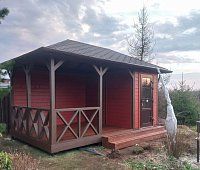 Имитация бруса 16×135 мм внутри, имитация бруса 21×135 мм снаружи.