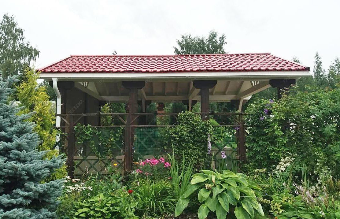 Для производства всех элементов навеса используется только отборная древесина без малейших дефектов, прошедшая камерную сушку и пропитку антисептиками. Навесу после защитной обработки лаком не страшны высокая влажность, а значит, можно быть уверенным, что дерево не растрескается, не разбухнет и не покоробится.