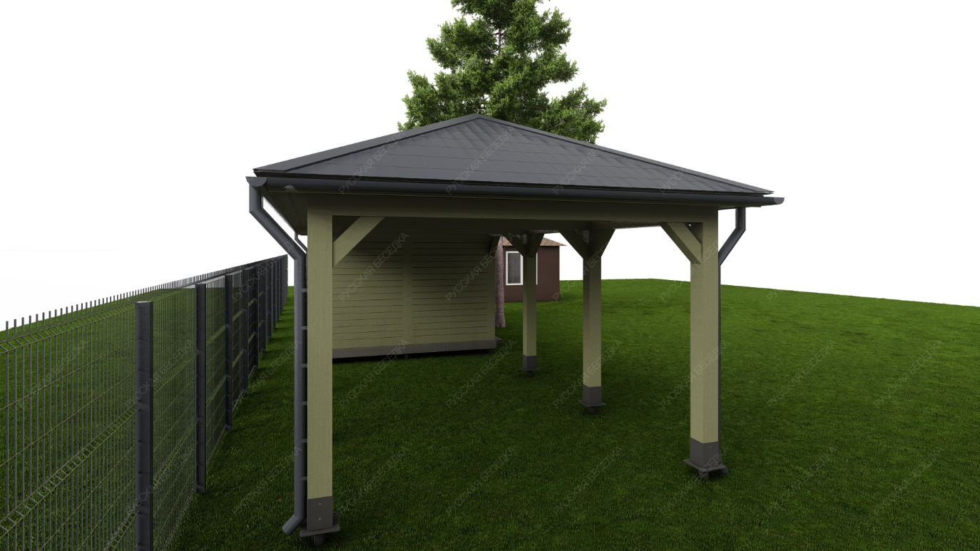 Навес из дерева послужит отличным парковочным местом для одного или нескольких автомобилей.