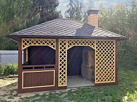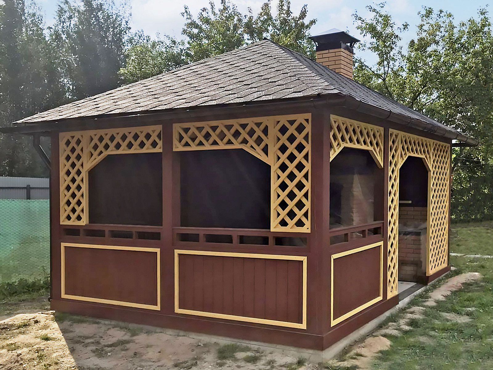 Беседка выполненная из лучших пород древесины, прослужит долгие годы и не потребует особого ухода и обслуживания. Специальные лакокрасочные материалы которые мы используем, предотвратят старение, гниение и заражение грибком конструкции кухни. Используемая огнебиозащита образует полупрозрачное полуматовое покрытие, стойкое к влаге, УФ-излучению, перепадам температуры и другим атмосферным воздействиям.
