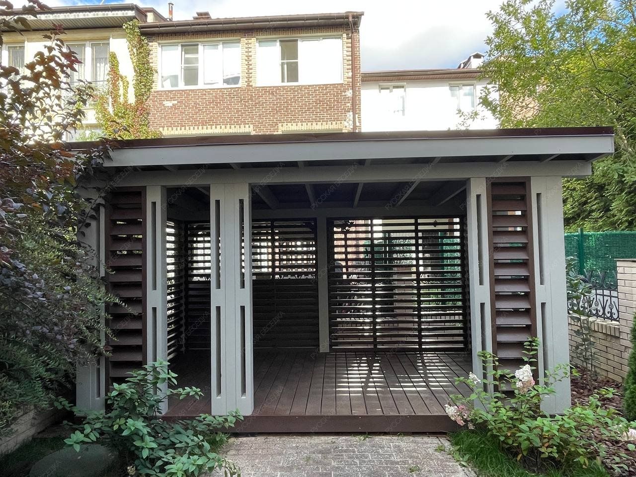 Беседка выполненная из лучших пород древесины, прослужит долгие годы и не потребует особого ухода и обслуживания. Специальные лакокрасочные материалы которые мы используем, предотвратят старение, гниение и заражение грибком конструкции кухни. Используемая огнебиозащита образует полупрозрачное полуматовое покрытие, стойкое к влаге, УФ-излучению, перепадам температуры и другим атмосферным воздействиям.