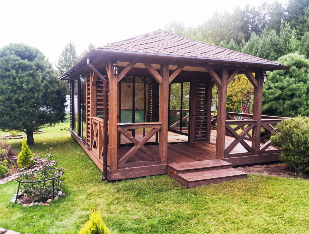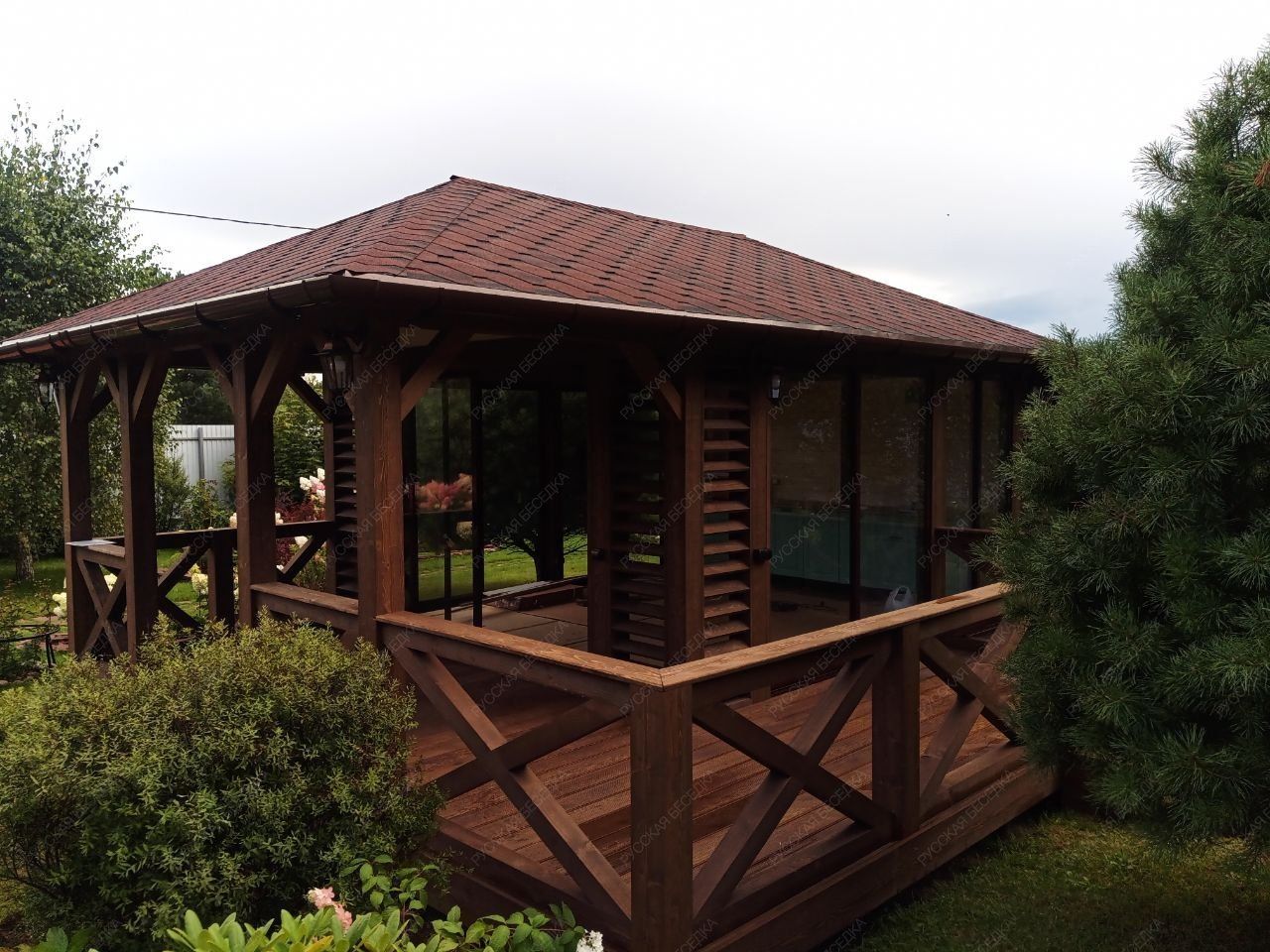 Беседка выполненная из лучших пород древесины, прослужит долгие годы и не потребует особого ухода и обслуживания. Специальные лакокрасочные материалы которые мы используем, предотвратят старение, гниение и заражение грибком конструкции кухни. Используемая огнебиозащита образует полупрозрачное полуматовое покрытие, стойкое к влаге, УФ-излучению, перепадам температуры и другим атмосферным воздействиям.